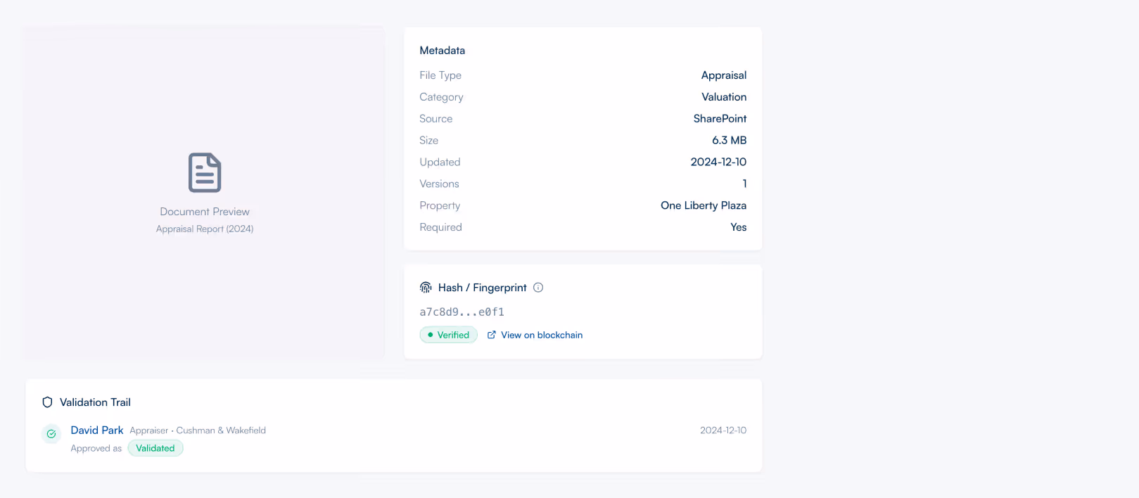 Building adds a verifiable history to property information. Provenance, integrity, and stakeholder actions are preserved over time so teams can work from records that are more traceable, accountable, and reliable.
