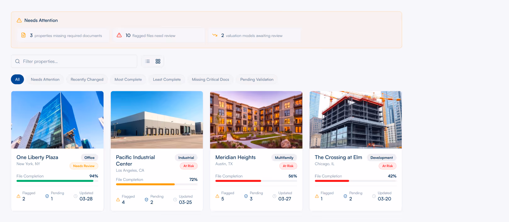 Building helps real estate teams automate manual workflows, monitor asset and portfolio data, and keep properties ready for financing, compliance, reporting, and transactions.